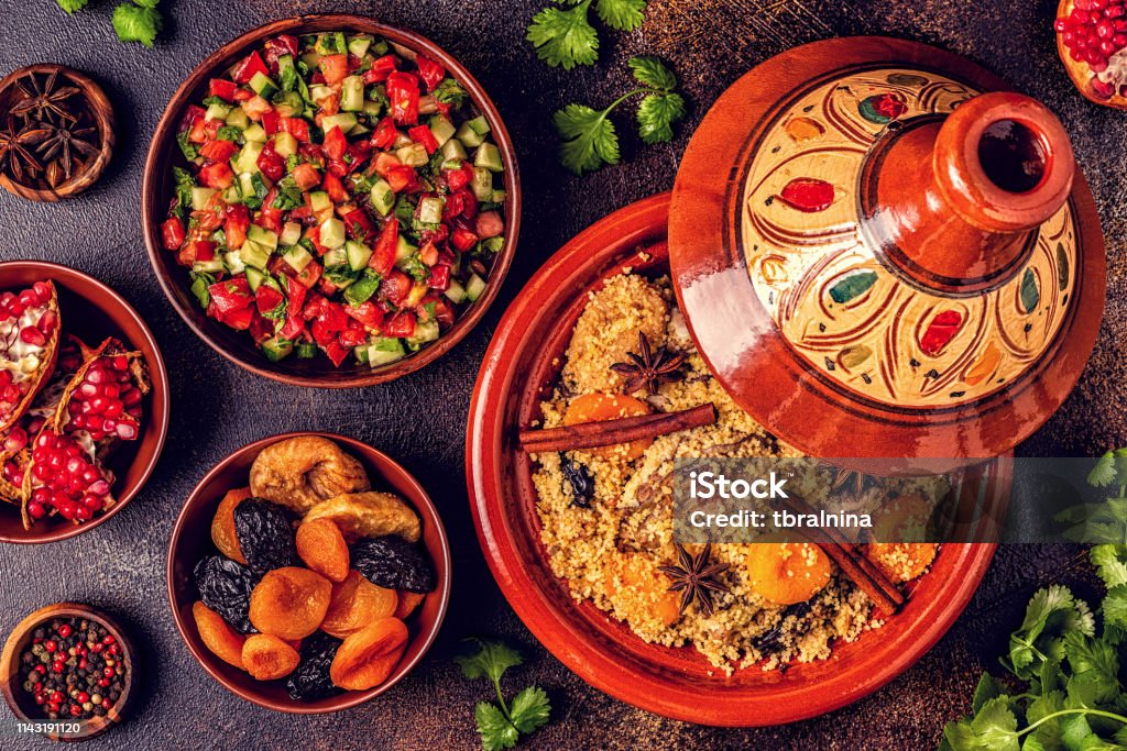 모로코 음식은 아프리카와 아랍, 지중해 문화가 어우러져 다채로운 향과 맛을 자랑합니다. 대표 요리로는 타진(Tajine)이 있습니다. 이는 뚜껑이 뾰족한 전통 도기 그릇의 이름이자 그 안에서 조리된 요리를 뜻합니다. 양고기, 닭고기, 채소를 넣고 오랜 시간 천천히 끓여내며, 사프란, 계피, 생강, 고수와 같은 향신료가 풍미를 더합니다. 타진은 지역과 가정마다 레시피가 달라 여행자가 여러 도시를 이동하면서 색다른 맛을 비교해 보는 즐거움이 있습니다.